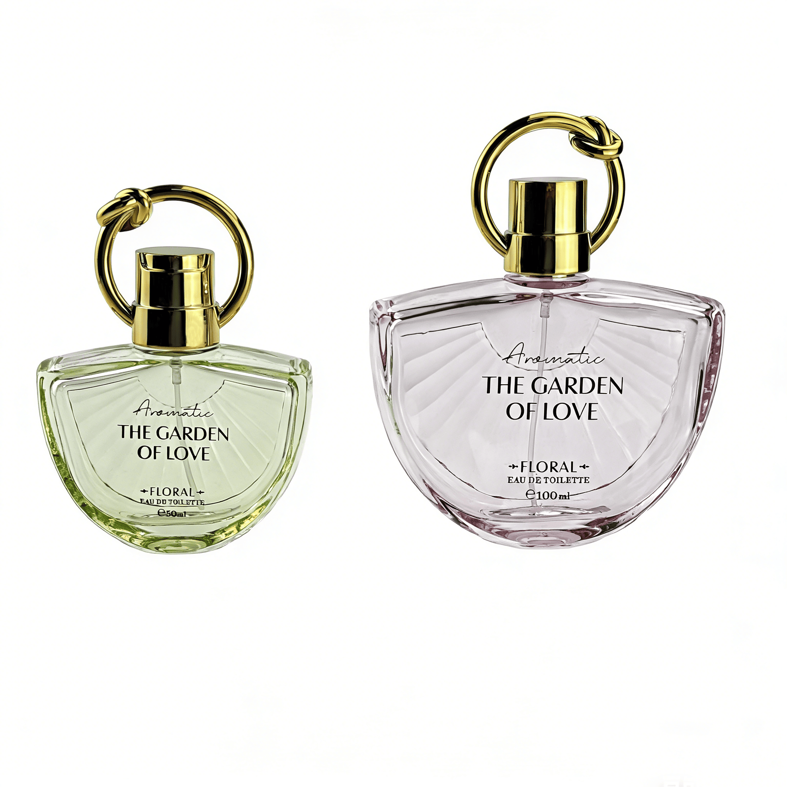 Elevate your fragrance line with our elegant ring-top perfume bottles. Available in 50ml and 100ml sizes, these premium glass bottles feature a romantic fan-shaped silhouette, signature ring-top metallic caps, and secure leak-proof sealing. Fully customizable colors make them ideal for perfume creators, luxury gift sets, and premium personal care brands.